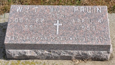 William Thomas “Billy” Pruin was born October 22, 1951, the son of William Pruin and Shirley Ann Pruin. He died Tuesday, April 4, 1995.